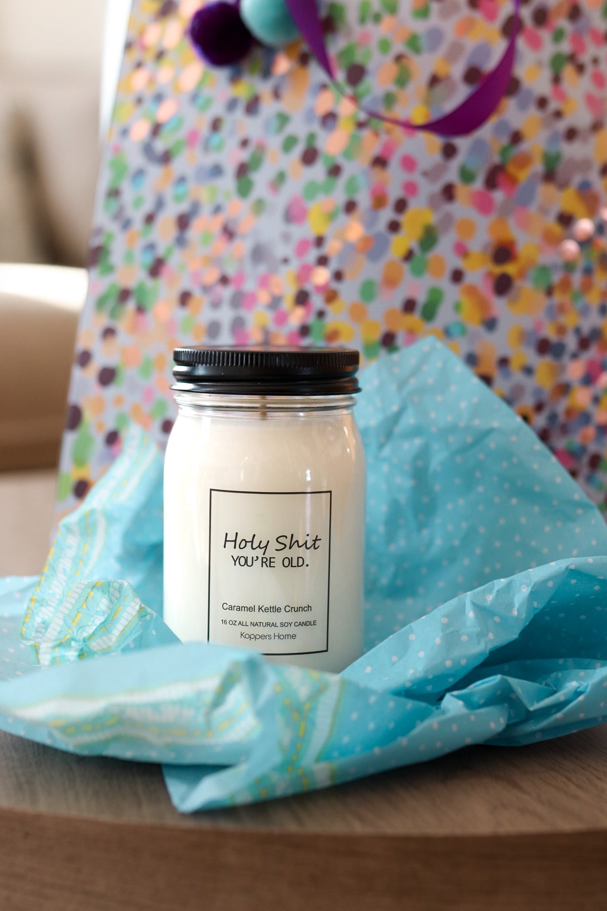 Celebrate aging like fine wine—with a touch of sass! This cheeky caramel corn scented candle brings laughs and cozy vibes, making it the perfect gift for those who age like legends. Burn time: long enough to reminisce about the good ol’ days.