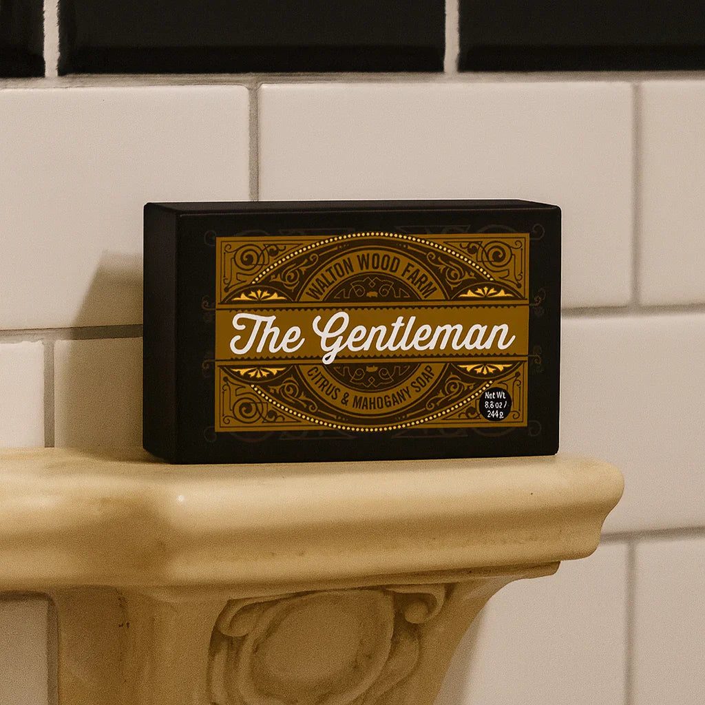 Our Citrus and Mahogany scented bar soap isn’t just soap, it’s your ticket to sophistication. With a fresh citrus twist and a robust mahogany finish, you'll smell as good as you look. Because a true gentleman deserves nothing less.