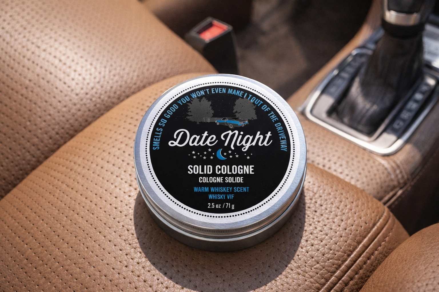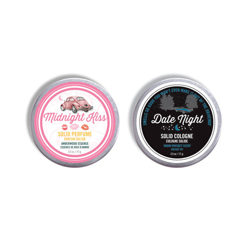 Turn up the chemistry with our Date Night Essentials. This perfectly paired his-and-hers set combines our smooth and magnetic 2.5oz Date Night Solid Cologne for men with our alluring and mysterious 2.5oz Midnight Kiss Solid Perfume for women. Whether it’s a first date, an anniversary, or a spontaneous night out, these long-lasting fragrances are designed to complement one another and spark connection. Slip them into a pocket or purse and enjoy irresistible scent wherever the evening leads.