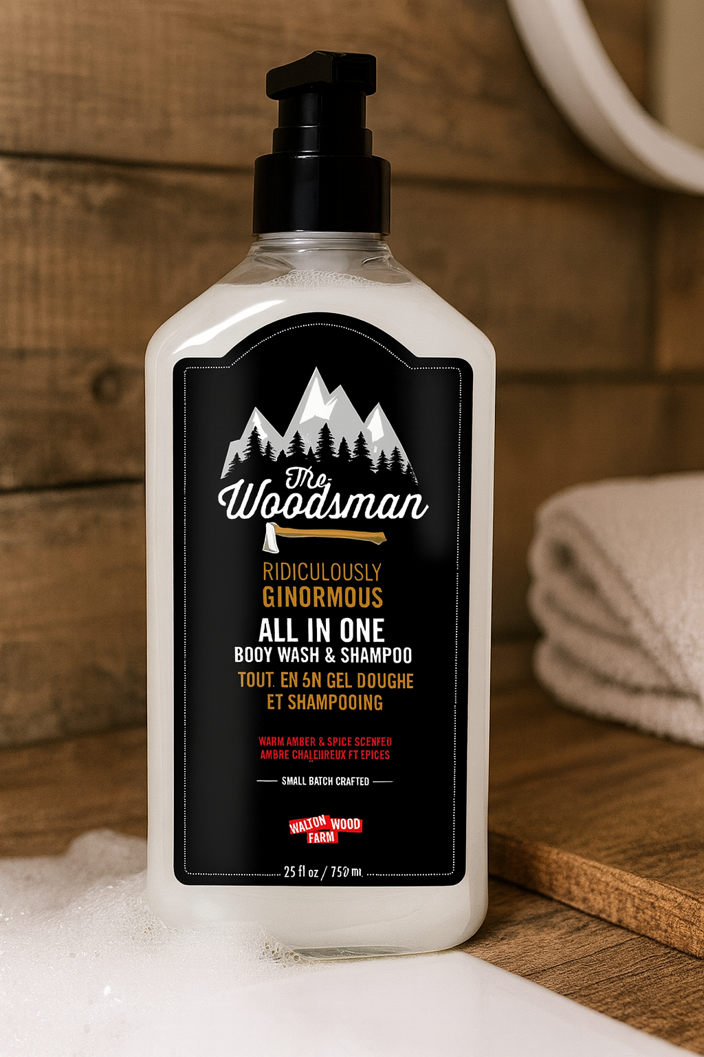 Introducing the Ridiculously Ginormous All In One. Because one bottle should last as long as your adventures. Our new 25oz The Woodsman All-in-One packs the same bold, Warm Amber & Spice scent you love—just way more of it. Cleanse, hydrate, and conquer the day with skin that smells as confident as you feel.